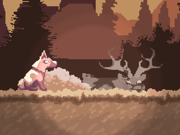 Due to time constraints, I didn't have enough time to draw everything by hand, so I took a ready-made tilemap and modified it slightly to match the color, and I changed the shapes in some places. I drew the background by hand, but I used ready-made clouds and modified them slightly. I drew all the wolf sprites and their animations by hand